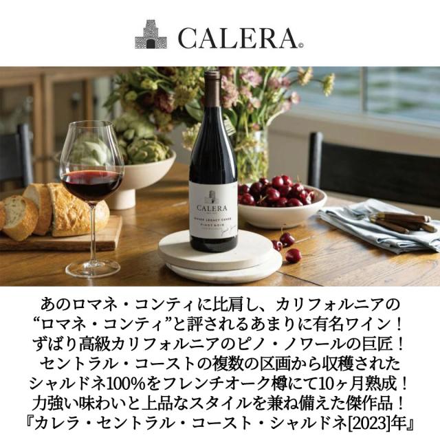 あのロマネ・コンティに比肩し、カリフォルニアの “ロマネ・コンティ”と評されるあまりに有名ワイン! ずばり高級カリフォルニアのピノ・ノワールの巨匠! セントラル・コーストの複数の区画から収穫された シャルドネ100%をフレンチオーク樽にて10ヶ月熟成! 力強い味わいと上品なスタイルを兼ね備えた傑作品! 『カレラ・セントラル・コースト・シャルドネ[2023]年』