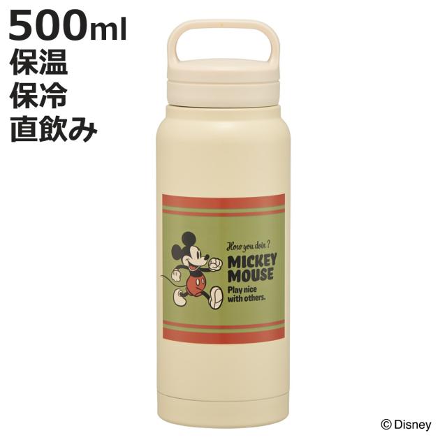 水筒 500ml スクリューハンドルマグボトル ミッキーマウス ( ミッキー 直飲み 保温 保冷 マグボトル ステンレスボトル ハンドル付き 真空二重構造 マグ ボトル ダイレクトボトル ステンレス マイボトル アウトドア ハンドル )