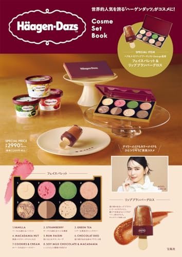 あの「ハーゲンダッツ」がコスメに! 世界的人気を誇る 「H?agen-Dazs (ハーゲンダッツ)」が コスメになって登場! スペシャルアイテムは豪華2点セット! ミニカップの定番商品をはじめとした人気フレーバーを表現した「フェイスパレット」 アイスクリームバー形の「リッププランパーグロス」 ヘア&メイクアップアーティスト・George(ジョージ)さんが監修を務め、 目で見てかわいいだけでなく、実用性にもこだわったコスメが誕生しました。 ●〇●○POINT●〇●○ 【フェイスパレット】 ? VANILLA ベースにも使えるハイライト。粒子の細かいパールが肌に密着し、毛穴の目立たない綺麗な肌を演出します。鼻筋や唇の山などへの使用もおすすめ。 ? STRAWBERRY チークにも使えるマットな質感。ぼかすと薄く、重ねると高発色に。赤みが入っているので、腫れぼったい印象になりにくく、単色でも使いやすいカラー。 ? GREEN TEA トレンドのグリーンはどんな肌色の方とも好相性。シアーな発色とゴールドラメが混ざった初心者でも取り入れやすいカラー。ポイント使いでおしゃれ上級者に! ? MACADAMIA NUT チラチラと繊細に輝くラメが、美しいツヤ感を演出。涙袋メイクやハイライトとして入れるとグッと印象的に。カラーアイライン・マスカラとも相性抜群。 ? RUM RAISIN 高発色ながら肌になじみやすいモーヴ。どの色とも相性がよく、締め色としても優秀なマルチカラー。単色で下まぶたに入れるのがGeorgeさんのお気に入り。 ? CHOCOLAT DUO しっとりとしたマットな質感。抜け感を出せる赤みブラウン2色は混ぜて調整もできるので、アイライン、アイブロウ、涙袋ラインなど万能に使用できます。 ? COOKIES & CREAM 色ムラを補正してくれるベースカラー。カバー力があり、お直しの際にフェイスパウダーとして気になる箇所にトントンとのせるのもおすすめ。 ? SOY MILK CHOCOLATE & MACADAMIA フレーバーの濃厚さをイメージし、多色ラメをざっくりと。大粒ラメでありながら濡れているようなしっとりとした質感で使いやすく、ひと塗りでしっかり発色します。 【リッププランパーグロス】 透け感のあるレッドブラウン。単色はもちろん、手持ちのリップと重ねても楽しめるのがうれしい。ゴールドラメがほどよく上品に輝きます。唇をふっくらと見せ(※1)、縦ジワを目立ちにくくする(※1)グロスです。のせると少しスースーとし、ちゅるんと美しい唇に。 ※1 メイクアップ効果による ●〇●○●〇●○ 誌面ではハーゲンダッツのおいしさの秘密や日本で販売開始後の歴史や、 商品ラインナップ紹介など、ファン必見の内容でお届けします。 豪華コスメ2点セット+BOOK(8P)のセットを 2990円+税のスペシャルプライスでお届け。 この機会をお見逃しなく! フェイスパレットサイズ(約):タテ6.9×ヨコ13.3cm リッププランパーグロスサイズ‘(約):タテ7×ヨコ3cm |