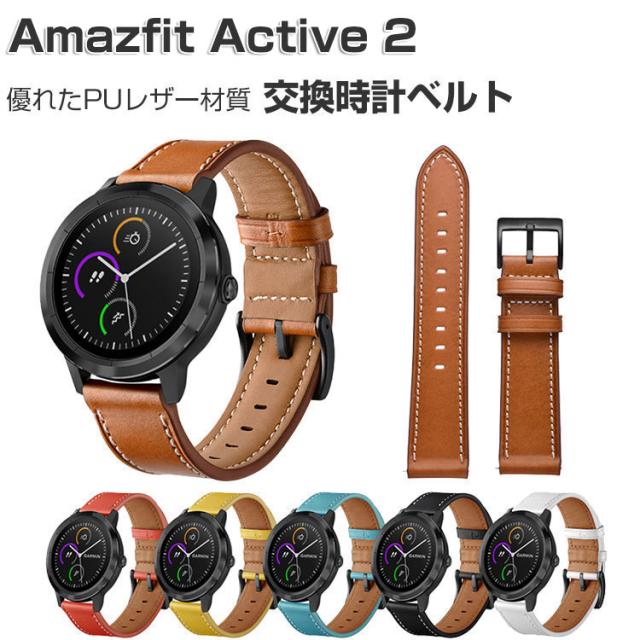 Amazfit Active 2 交換 バンド 替えベルト ウェアラブル端末・スマートウォッチ PUレザー素材 腕時計ベルト スポーツ ベルト 交換用 幅20mm 簡単装着 男性用 女性用 腕時計バンド おすすめ ギフト アマズフィット アクティブ 2 交換 バンド