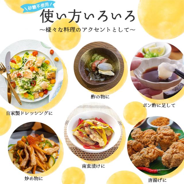 酎ハイ・焼酎・炭酸水・アイスクリーム・シャーベット・ケーキ・焼き菓子・パン・自家製ドレッシング・酢の物・ポン酢・炒め物・唐揚げ・南蛮漬け など