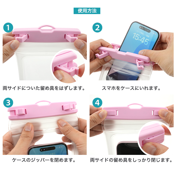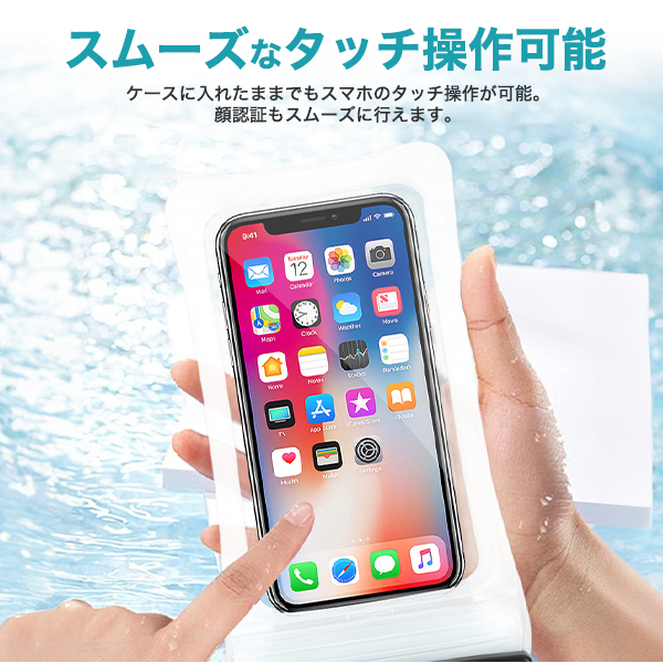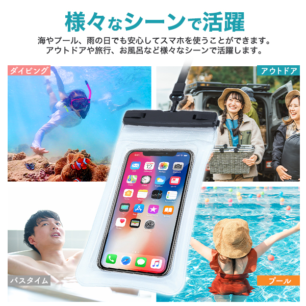 海やプール、雨の日でも安心してスマホを使うことができます。