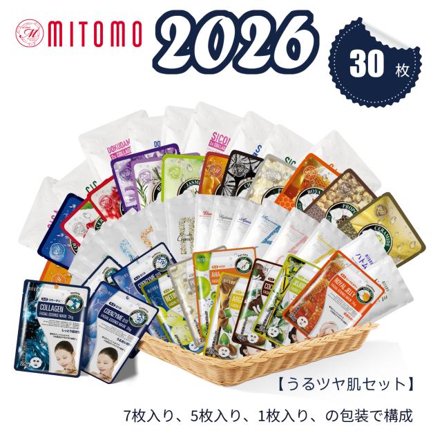 【新商品の販売】うるツヤ肌パック 福袋30枚 集中保湿フェスパック 美容マスク 1日1枚で美肌習慣 潤いたっぷり 全商品からランダム構成 [LBSH00030B]
