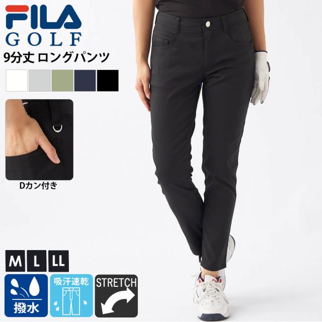 【30%OFF】 FILA GOLF フィラゴルフ ロングパンツ 9分丈 レディース クロップドパンツ ゴルフウェア ストレッチ 伸縮性 撥水 防水 吸汗速乾 ドライ 快適 春 夏 スポーツブランド おしゃれ きれいめ 細見え 美脚 白 黒 紺 2025ss
