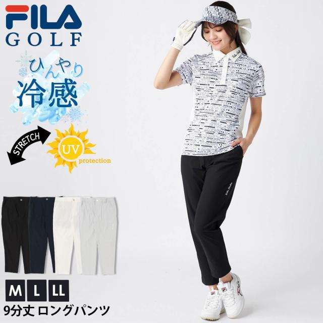 【30%OFF】 FILA GOLF フィラゴルフ ロングパンツ 9分丈 レディース クロップドパンツ ゴルフウェア ストレッチ 接触冷感 ひんやり 快適 UVカット 紫外線対策 春夏 薄手 ムレ防止 スポーツ おしゃれ きれいめ 細見え 美脚 白 黒 2025ss