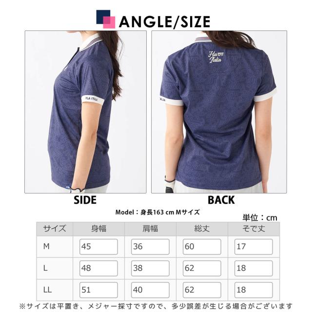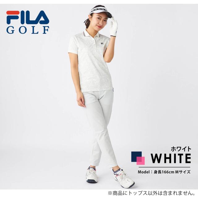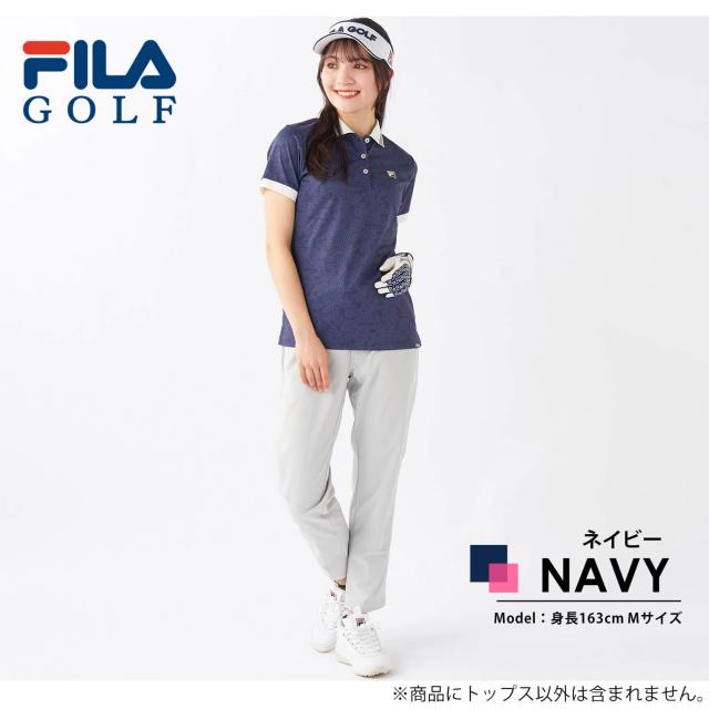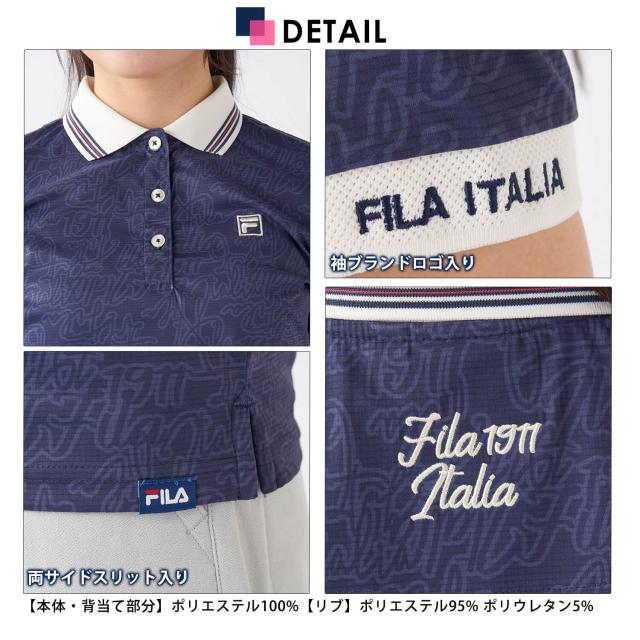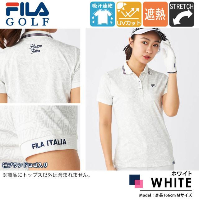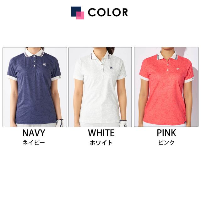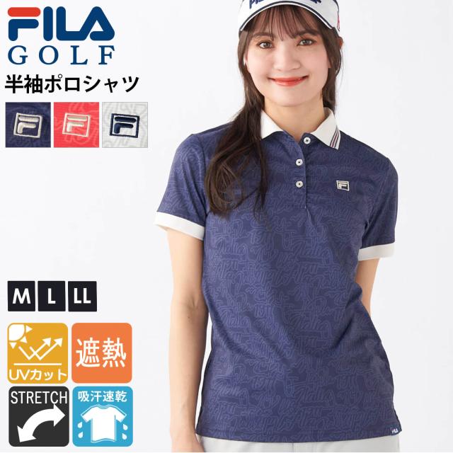 【30%OFF】 FILA GOLF フィラゴルフ ポロシャツ 半袖 レディース 吸汗速乾 ストレッチ UVカット 遮熱 ゴルフウェア ブランド ロゴ 刺繍 総柄 ボタンダウン おしゃれ 可愛い スポーツウェア 黒 白 紺 春 夏 2025ss