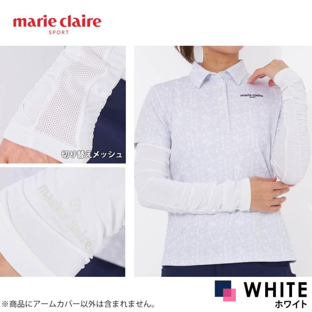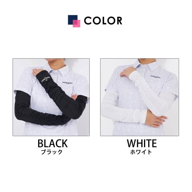 【30%OFFセール】marie claire GOLF マリクレールゴルフ アームカバー レディース ゴルフグッズ 吸汗速乾 UVカット 紫外線対策 日除け シャーリング メッシュ切り替え ムレ軽減 ゴルフウェア スポーツ 白 黒 2025ss