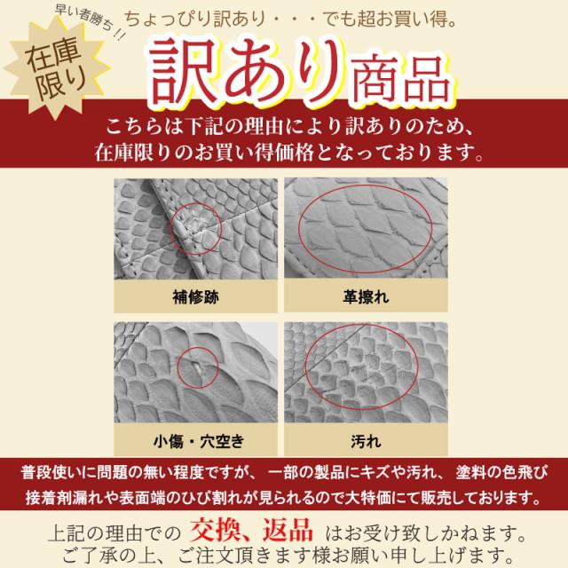 | その他詳細 | 天然皮革に関してはワシントン条約を元に適正に輸入された商品を販売しています。 撮影に使用された商品が届く場合がございますが、当店の運営に基づき、出荷時に問題の無いと判断し販売しております。 |