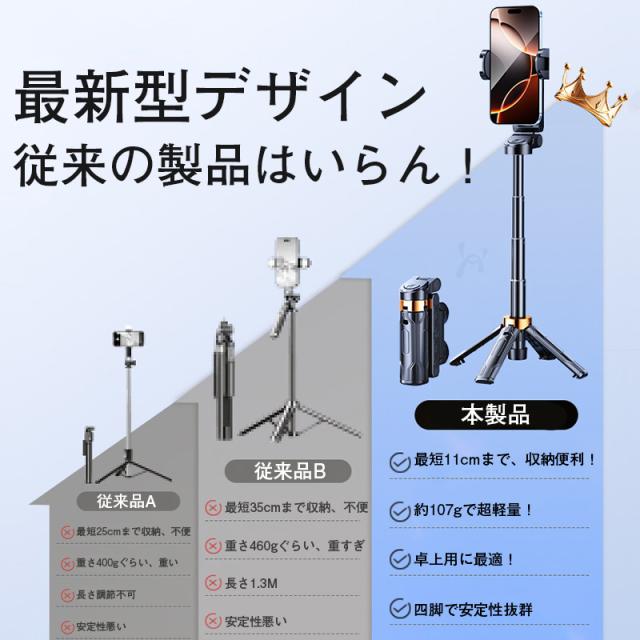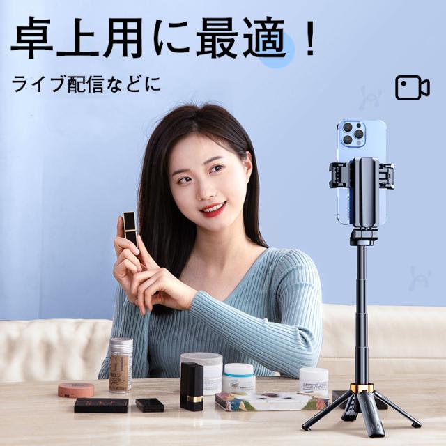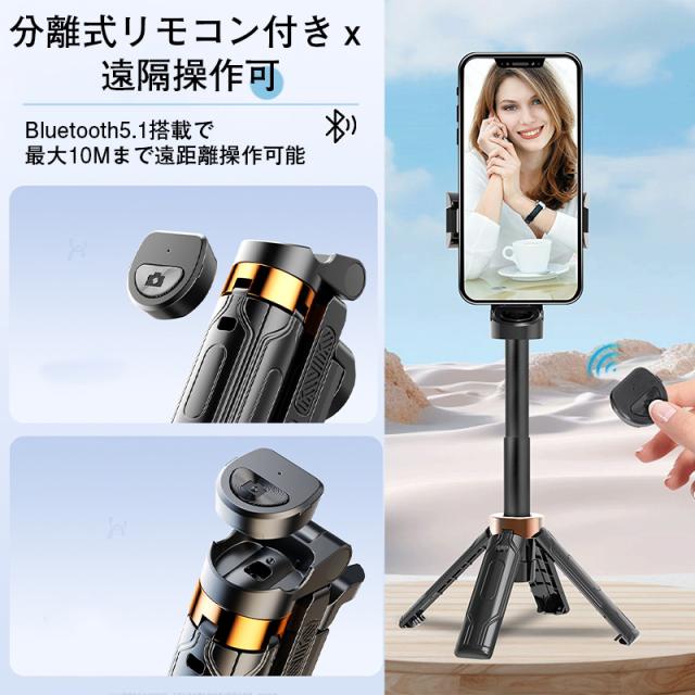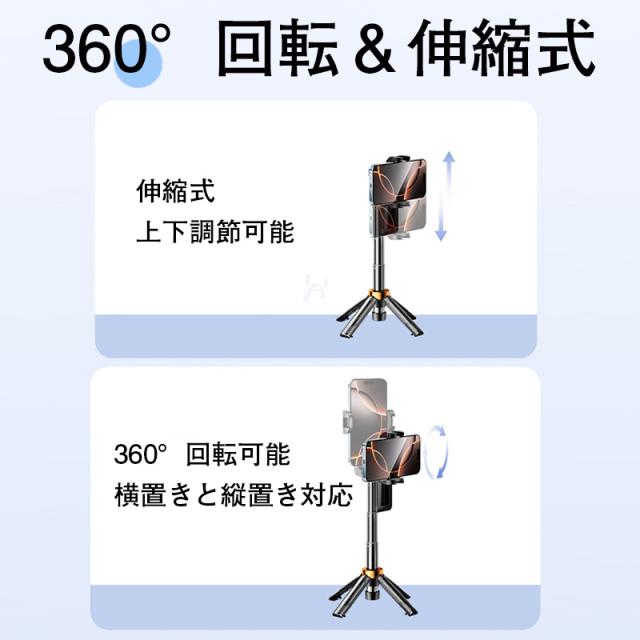 自撮り棒 セルカ棒 三脚 iPhone&Android対応 bluetooth リモコン付 スマホ じどり棒 6段階伸縮 360度回転 折り畳み 持ち運びに便利 三脚付き 小型 軽量 コンパクト 三脚スタンド