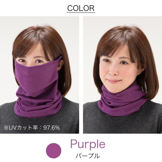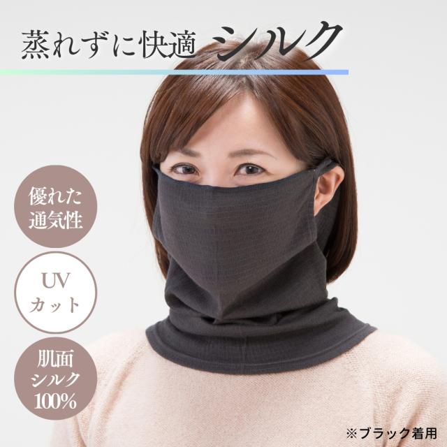 肌面はお肌にやさしいシルク100%。両側の穴に耳を掛けてマスクとして、すべて首に下ろしてネックウォーマーとしてもお使いいただけます。