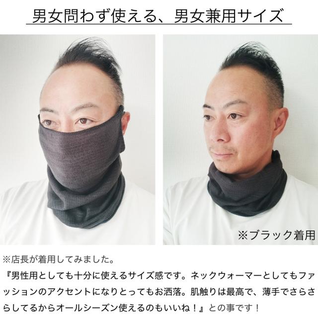 表に極細のコットン、肌面には極細のシルクを使用したガーゼ素材のマスク&ネックウォーマーです。