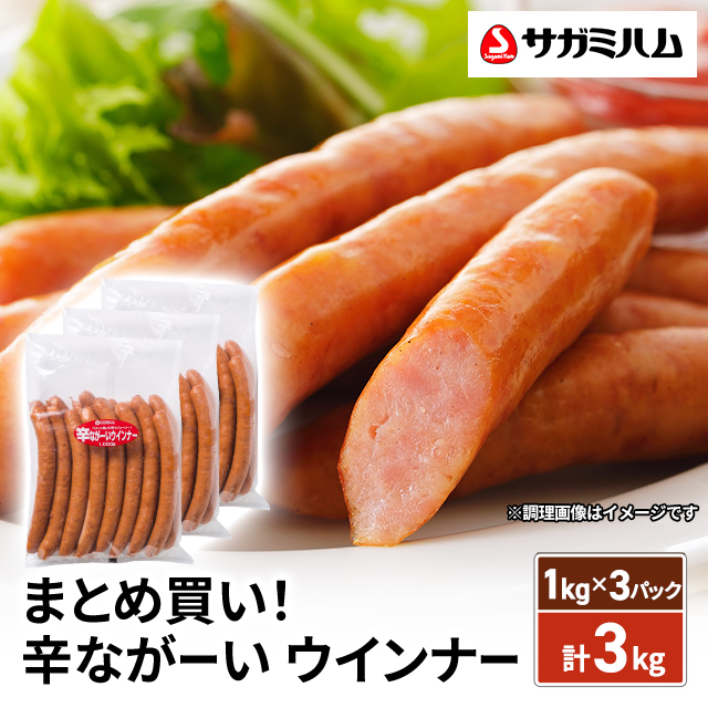 まとめ買い! サガミハム 辛ながーい ウインナー (唐辛子) 計3kg(1kg×3パック) ピリ辛 ストック 大容量 メガ盛り 惣菜 肉 肉惣菜 ソーセージ お弁当 おかず