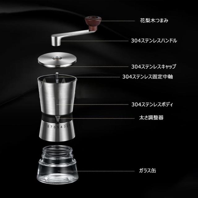 コーヒーミル 手挽きコーヒーミル 手動 取り外し可能 携帯用 喫茶店 セラミック研磨コア 粉砕度調整可能 手動式 手挽き カフェ coffee コーヒー豆