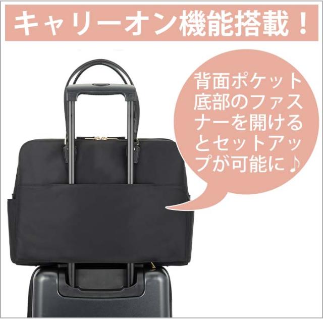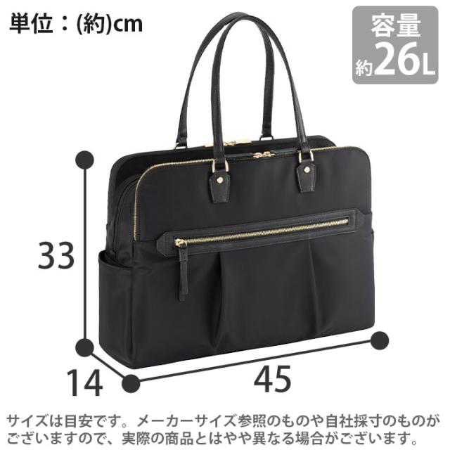 | この商品について | ノートPCの持ち運びに最適な、優秀お仕事バッグシリーズ 「ラポルテム」登場。 テレワークと出社を組み合わせたハイブリットワークに最適なトートバッグです。 整理整頓しやすい3気室タイプ。B4サイズが収納可能で15.6インチのPCに対応。普段持ち歩く荷物が多い方にもおすすめの大容量サイズ。 本体生地の表面に撥水加工を施し、ちょっとした水滴はさっと拭きとれます。 PC収納スペースは、クッション入りで、安心してノートパソコンを持ち運ぶことができます。 PC収納部がメイン収納部から独立しているので、プライベートな荷物を周囲に見られることなくPCを取り出せます。 メインルーム内にバッテリーやマウスなど、PC周辺機器を収納できるクッション入りマチ付きポケット搭載。さらに水筒や折りたたみ傘などを立てて収納できるボトルホルダーもついています。その他小物収納に便利なポケットが充実しています。 背面にファスナー付きのポケットを配置。貴重品の管理などにも役立ちます。また、上下のファスナーを開ければ、セットアップベルトとしても使用可能。スーツケースなどのプルドライブハンドルに固定できます。 底面に汚れが付きにくい底鋲付き。ハンドル部分が倒れるように設計されているため、座ったときや床に置いたときも邪魔になりません。 ストライプ柄の内生地がとってもおしゃれ。スーツスタイルやオフィスカジュアルスタイルに最適なすっきりとしたきれいめなデザインのトートです。 ※参考収納寸法 15.6インチノートPC:W38.5×H26.5×D2.7cm B4ファイル:38.0×27.3cm |