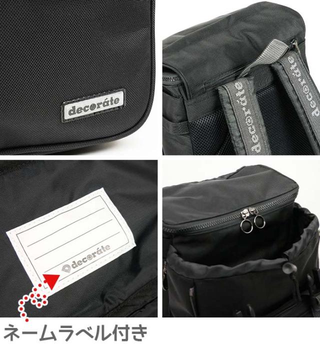 | この商品について | 通学バッグとしても活躍するdecorateからファブリックからベルト類の小物まで、ほぼすべてのパーツをブラックカラーで統一した、シンプルなルックスが魅力のモデル[BISCA]登場。 decorateの定番バッグの中でも、シンプルさが際立つデザインは、年令や性別、使うシーンや合わせるファッションのスタイルを問わず、オールラウンドに馴染んでくれます。 メインコンパートメントは、A4サイズ対応 & タブレットスリーブを装備。授業で使う教科書やタブレットPCなどを、無理なく収納できます。 サイドのファスナーで、サブコンパートメントの容量を調整可能。荷物の量に合わせて収納量とシルエットを変化させられます。 メインコンパートメントのファスナーは、ツマミが大きめなリングなので弱い力でもスムーズに動きます。手や指の力が弱いお子様でも開閉しやすい作りです。 レインカバーをフラップ内に内蔵しているので、通学途中や帰宅途中に急な雨にあってしまっても安心! 背中に当たる面は、あたりがやわらかいメッシュパネルを採用。通気性もバツグンで蒸れにくくなっています。さらにショルダーベルトは、少し厚みを持たせてクッション性を高めているので背負っていても快適です。 カジュアルなシーンはもちろん、フォーマルなスタイルに合わせてもしっくりと来るデザイン。 強い主張を持ったデザインや、強烈に目を引くカラーではないけれど、気付けばいつも傍にいる。そんな“安心感”と“ステルス性”、それがこの[BISCA]の魅力です。 |