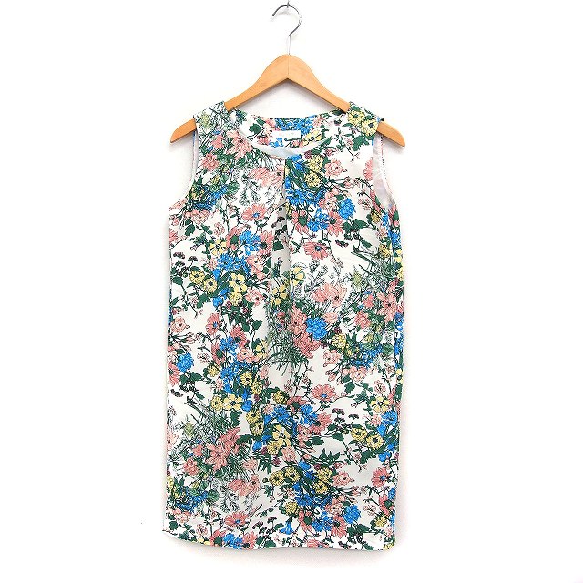 【中古】エージーバイアクアガール AG by aquagirl フラワープリント ノースリーブ ワンピース ひざ丈 フロントタック