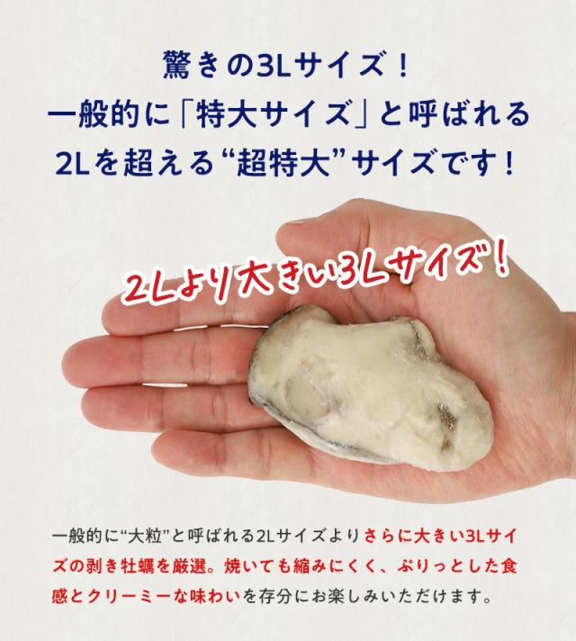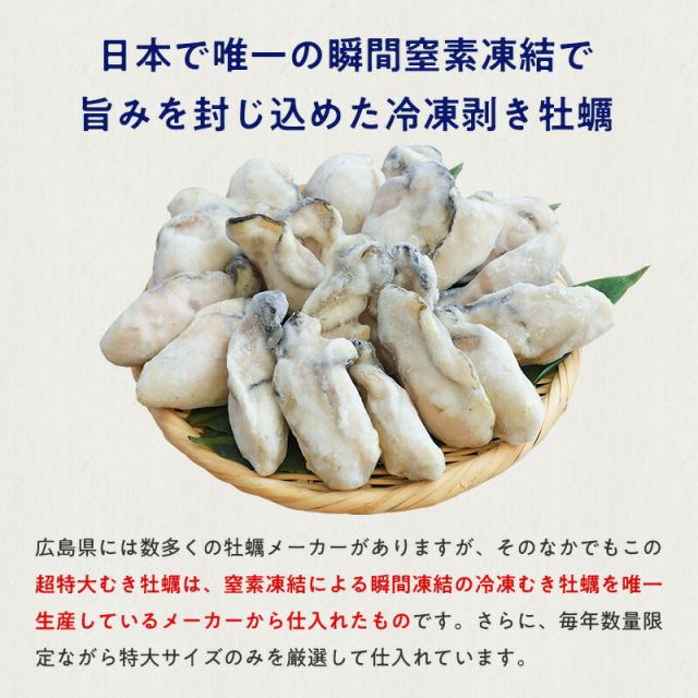 広島県産 牡蠣むき身 1kg(NET800g)×2袋 際立つ超大粒3Lサイズ 剥き牡蠣 山下水産 冷粒 カキ かき 冷凍食品 惣菜 お歳暮
