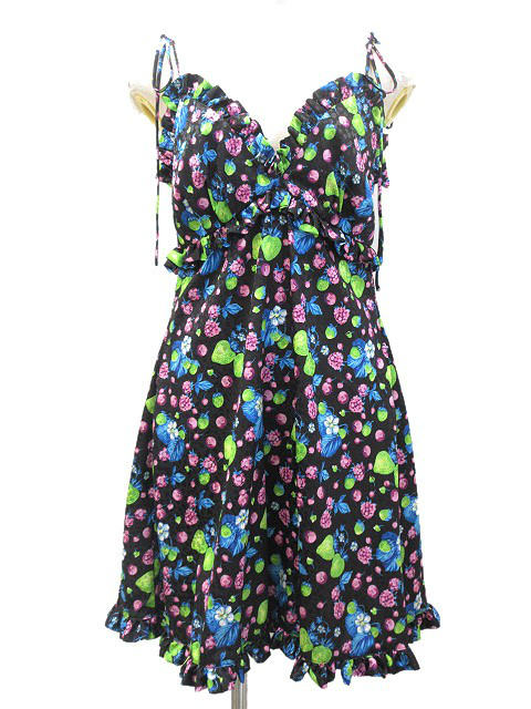【中古】エムエスジーエム MSGM ベリー プリント ワンピース フリル 40 ブラック 黒 キャミソール