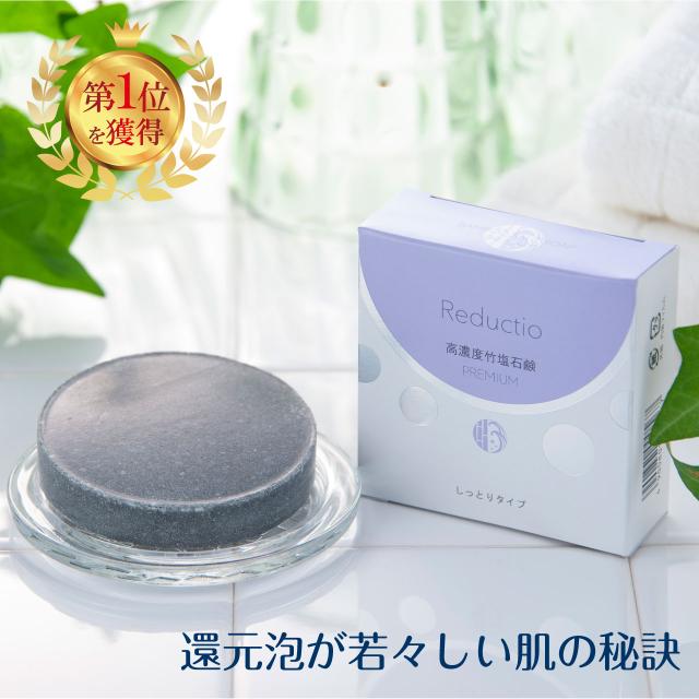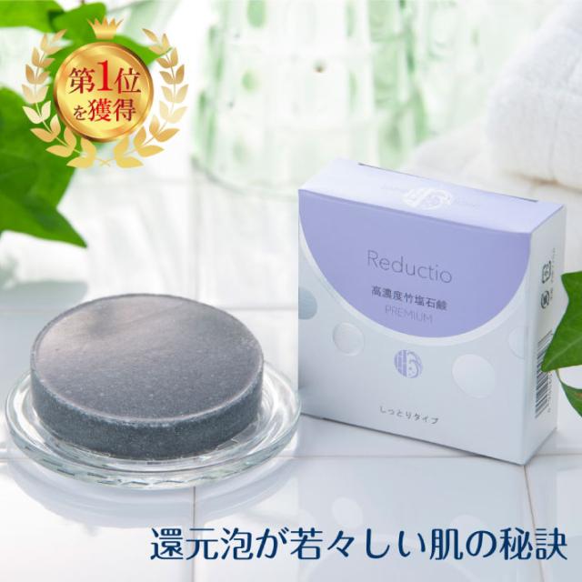 リダクティオ 高濃度 竹塩石鹸 プレミアム (しっとりタイプ) 60g 無添加石鹸 洗顔 石鹸 シミ ニキビ アトピー 敏感肌 乾燥肌 毛穴 保湿 石けん エイジングケア 塩石鹸 洗顔料 スキンケア 送料無料 ,