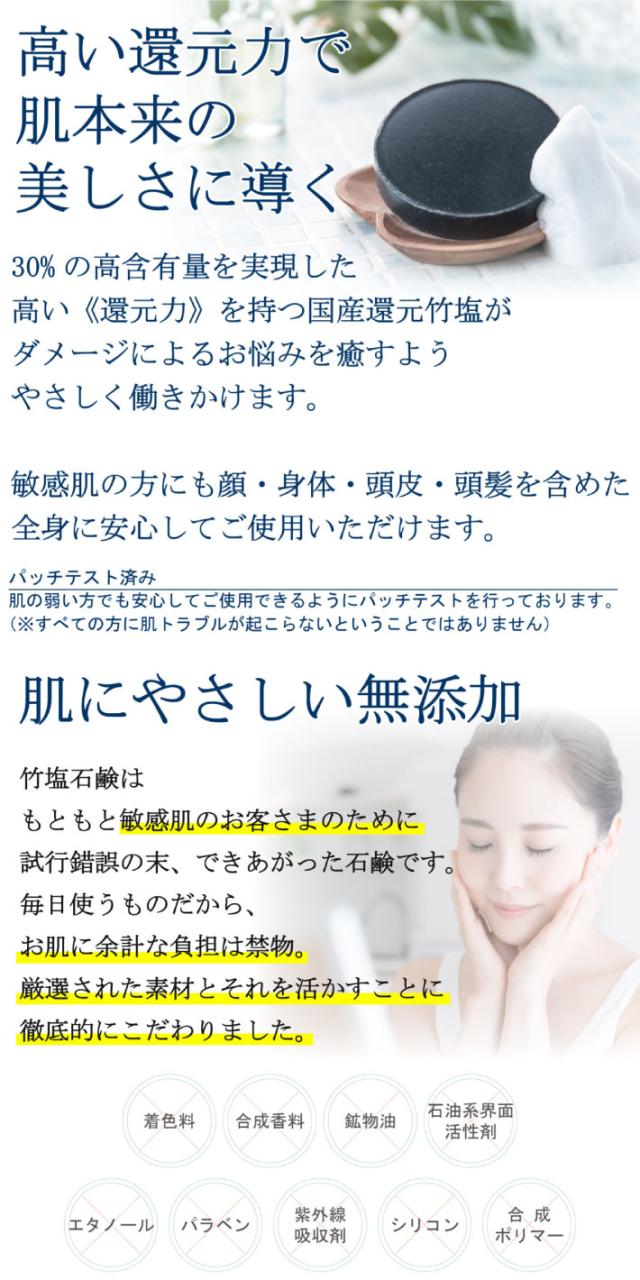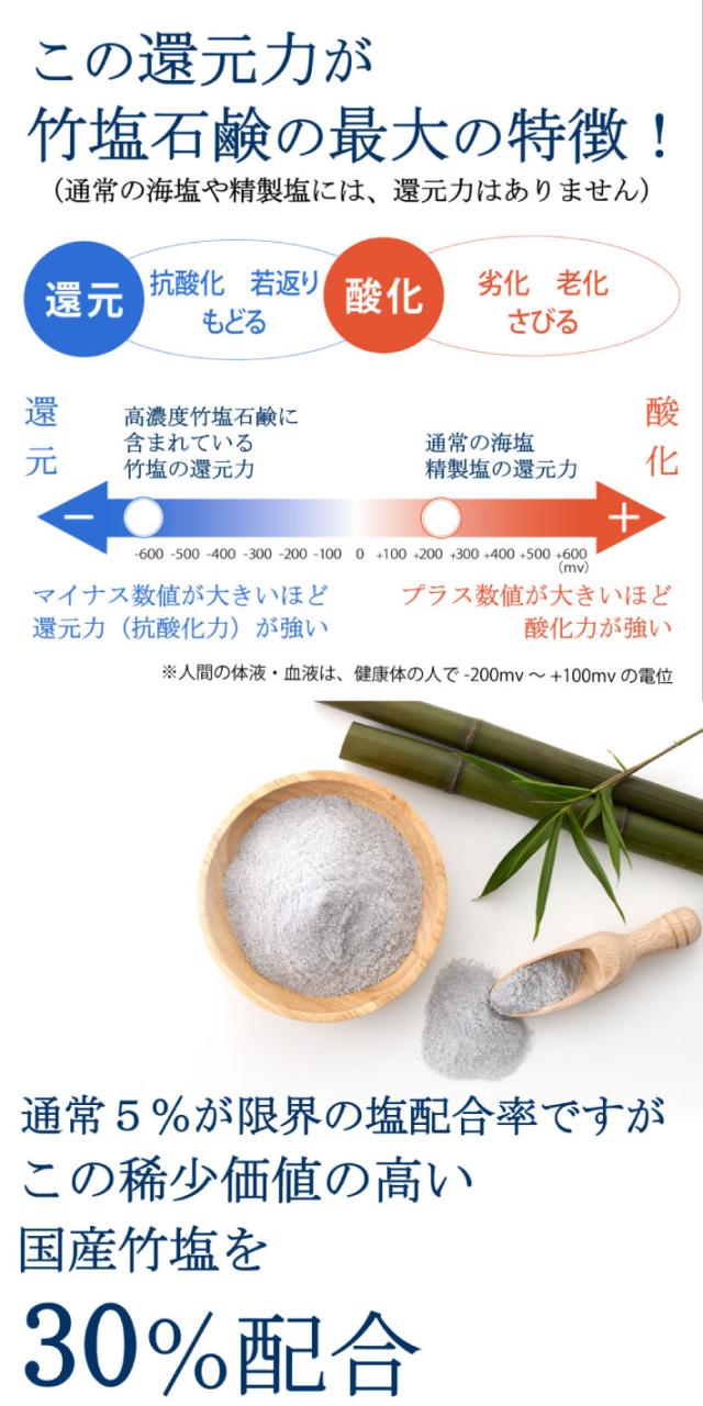 高い還元力と保湿を両立させた竹塩配合の 無添加 洗顔石鹸 シミ くすみ ニキビ アトピー 竹炭のスクラブ効果で毛穴スッキリ 洗顔料 リダクティオ 日焼け ケア 泡立てネット付き