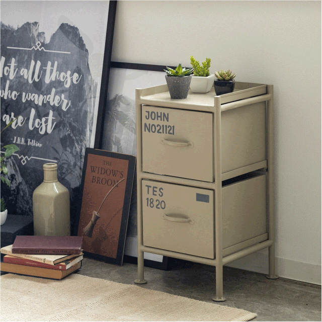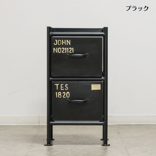 使うと雰囲気の良くなるスチールチェスト <ienowa/縦型2杯引出チェスト MSG> 3カラー ブラック グレーベージュ アイアンチェスト インダストリアル ブルックリン ヴィンテージ モノトーン 送料無料