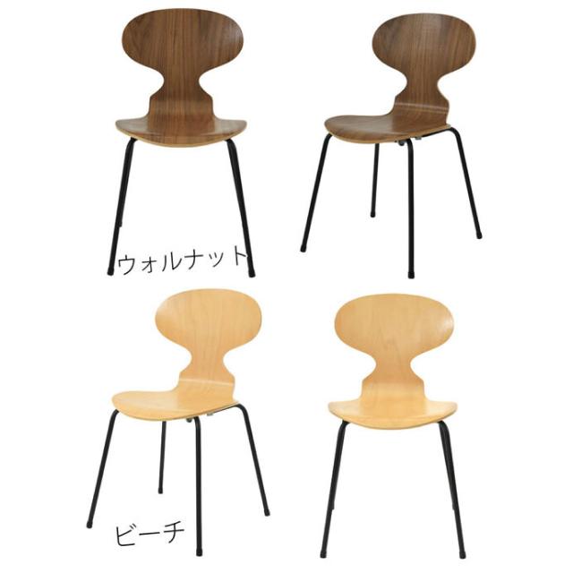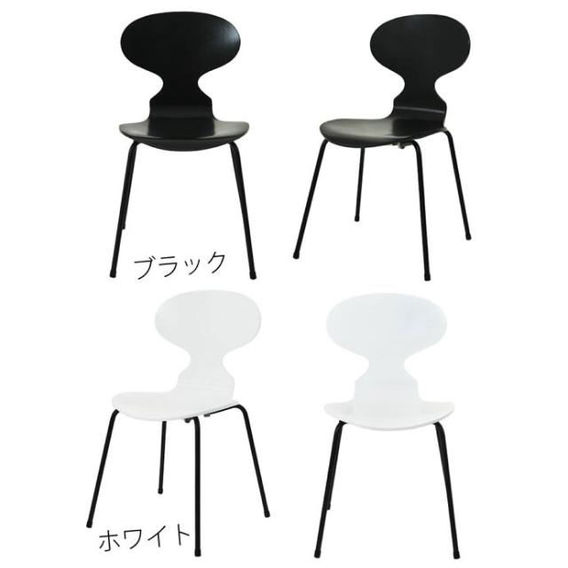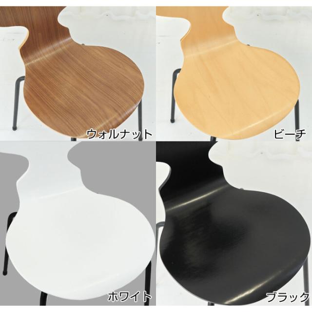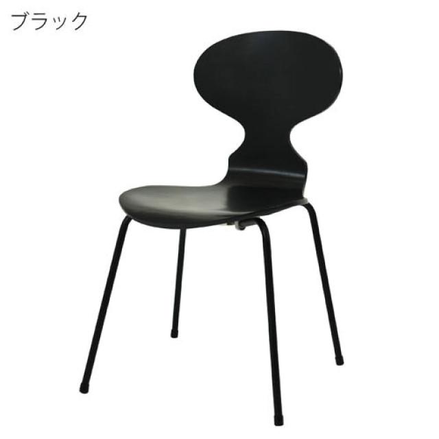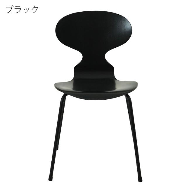 アントチェア ブラック脚 4カラー ウォルナット ピーチ ホワイト ブラック アルネ・ヤコブセン デザインチェア 3次元成形 名作チェア リプロダクト品 スタッキング可能 完成品 送料無料