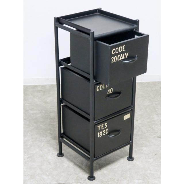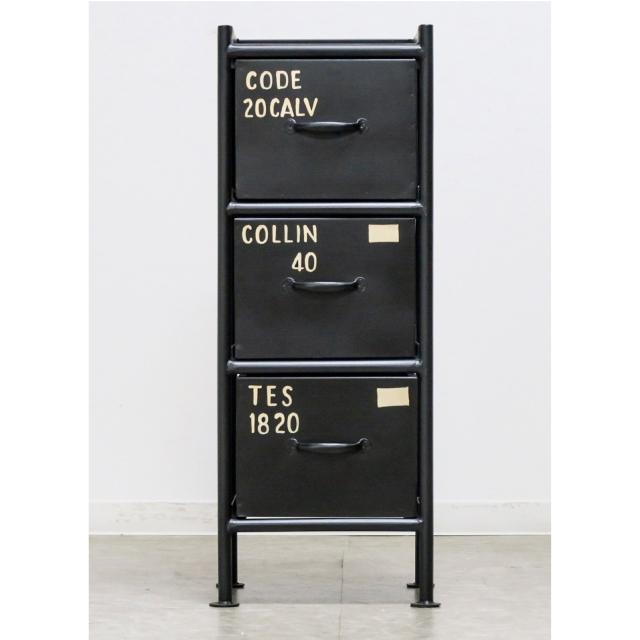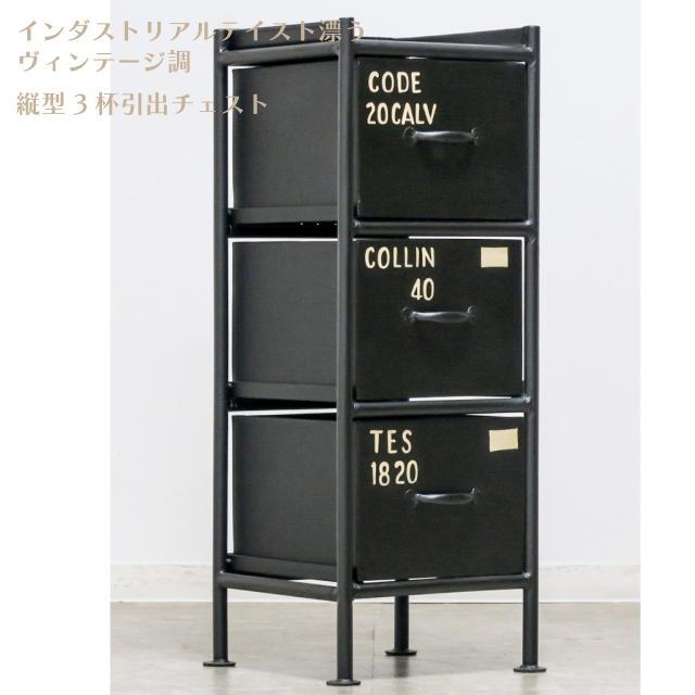使うと雰囲気の良くなるスチールチェスト ienowa 縦型3杯引出チェスト ブラック 幅30×高さ80×奥行き32cm インダストリアルテイスト ヴィンテージ調 スチール製 ユーズド感 収納 送料無料