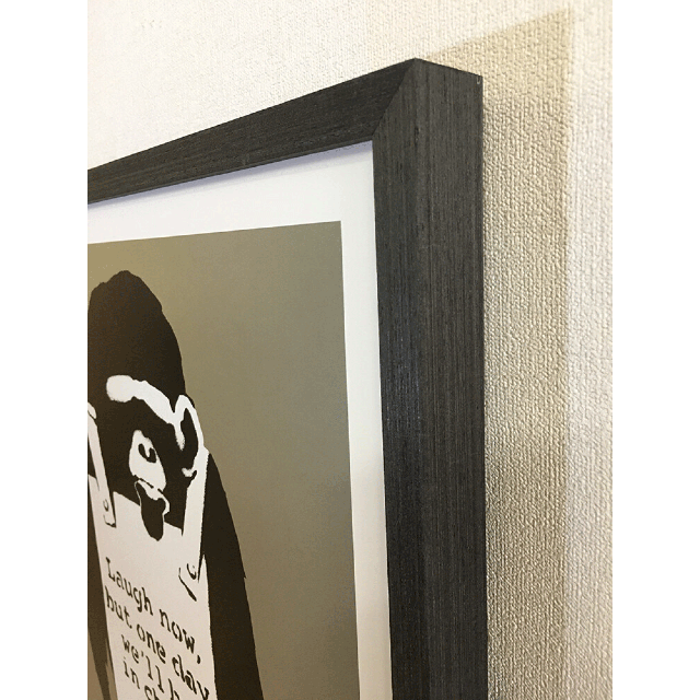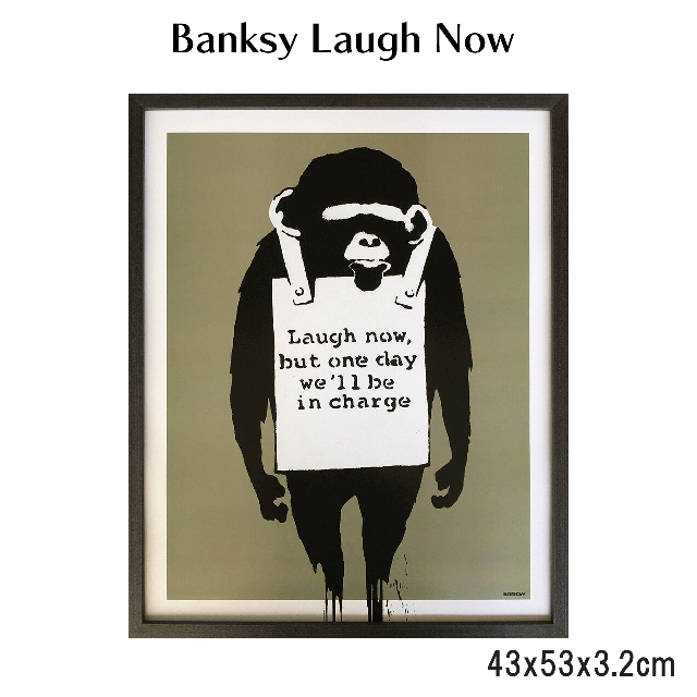 バンクシー Banksy Laugh Now 43x53x3.2cmインテリア 絵 絵画 アート アートポスター アートパネル アートフレーム 額入り チンパンジー モノトーン 送料無料