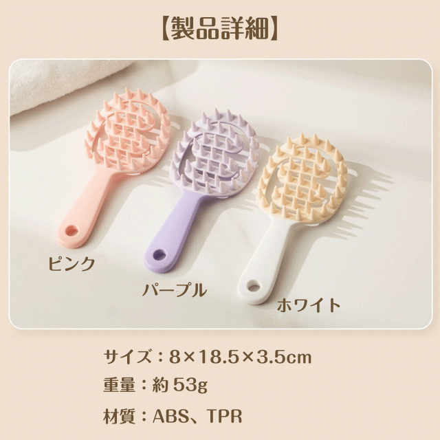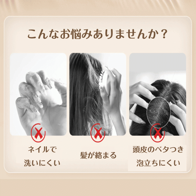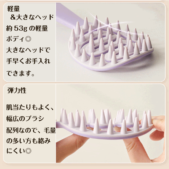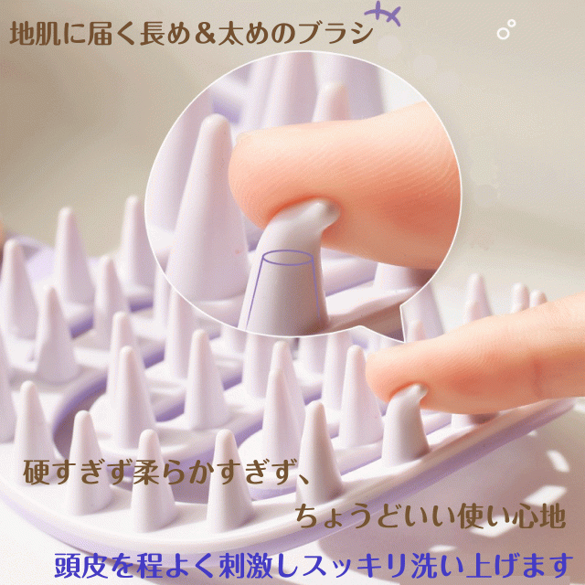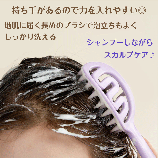 シャンプーしながらスカルプケアができる、持ち手付きシャンプーブラシです。