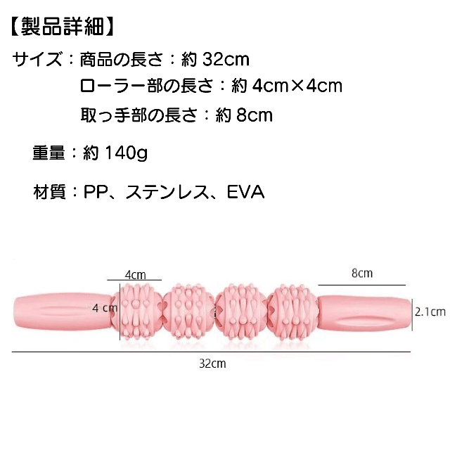 サイズ:商品の長さ:約32cm ローラー部の長さ:約4cm×4cm 取っ手部の長さ:約8cm