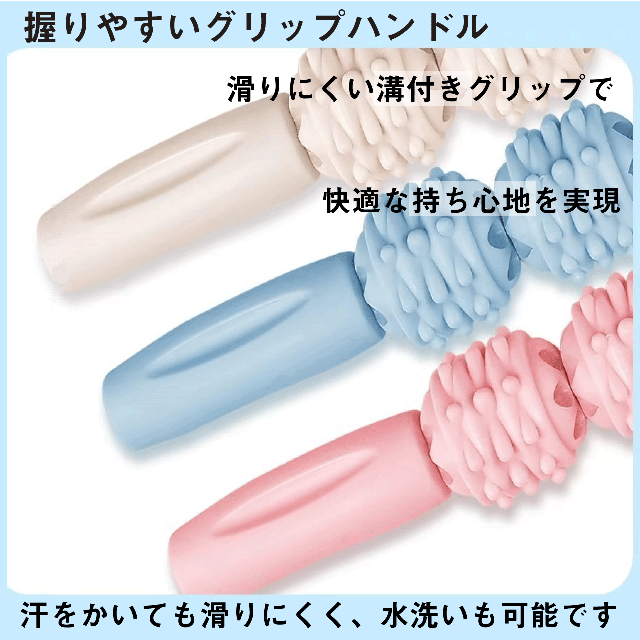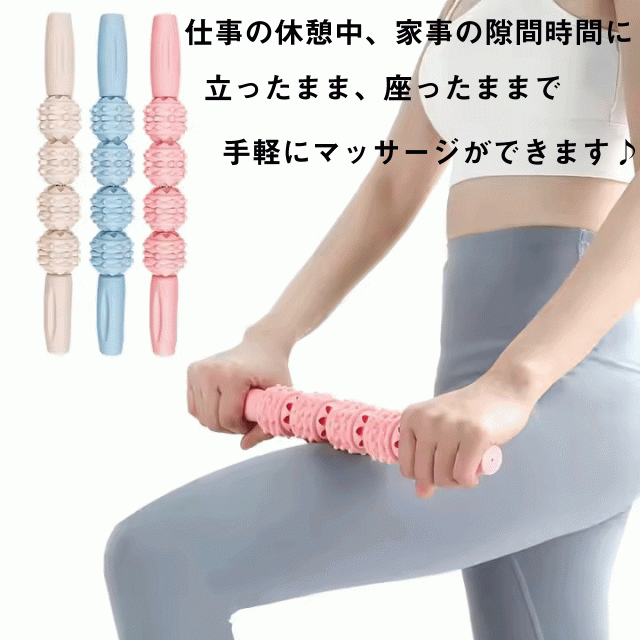 360°回転するローラーが筋膜を刺激し深層部までリリース、身体の内側からリフレッシュできるマッサージスティックです。仕事の休憩中、家事の合間に手軽にマッサージできます♪