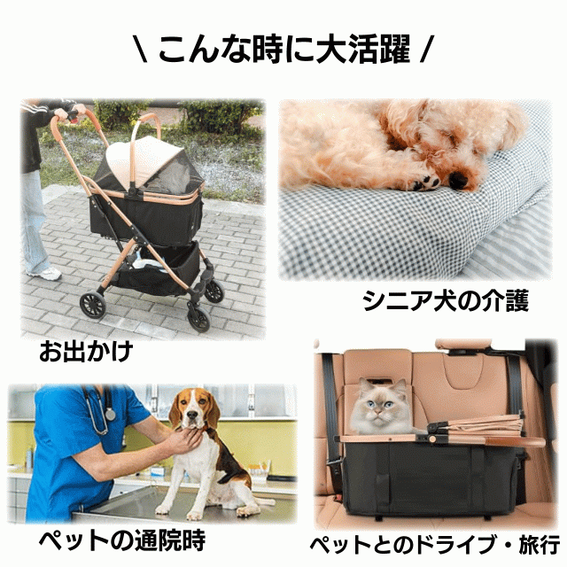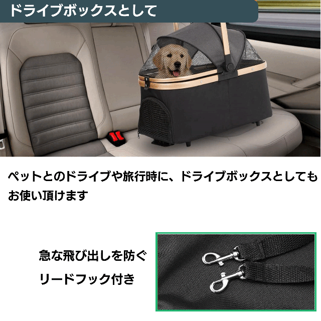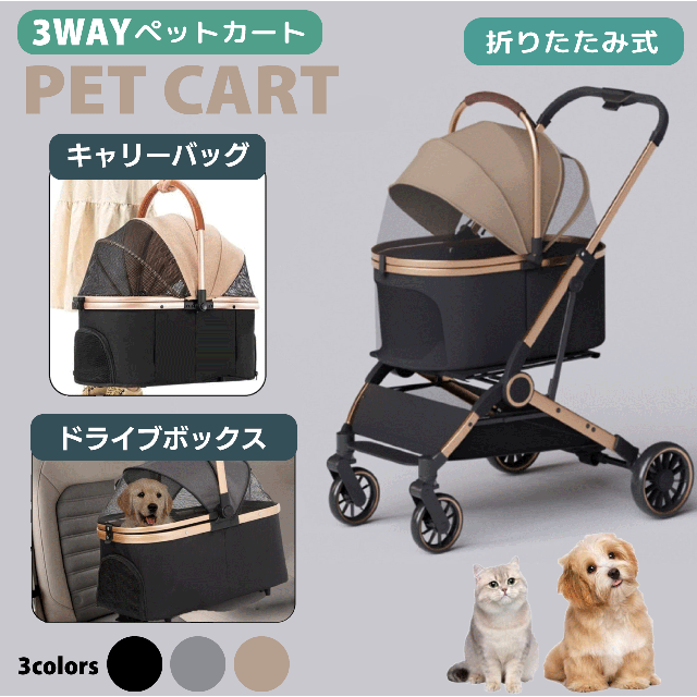 ペットカート・ペットキャリー・ドライブボックスと3WAYでお使い頂ける犬・猫兼用のバギーです!