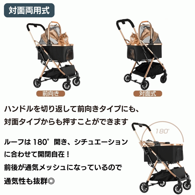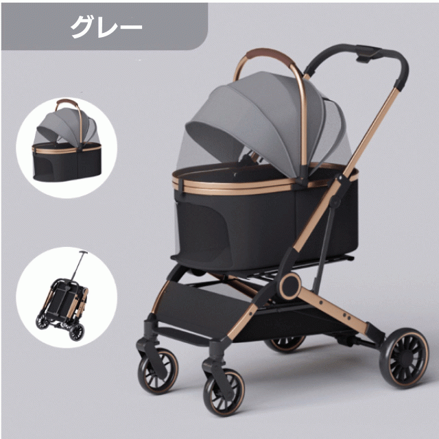 ペットカート・ペットキャリー・ドライブボックスと3WAYでお使い頂ける犬・猫兼用のバギーです!対面式でコンパクトに折り畳めるので、ペットとのお出かけも楽々♪