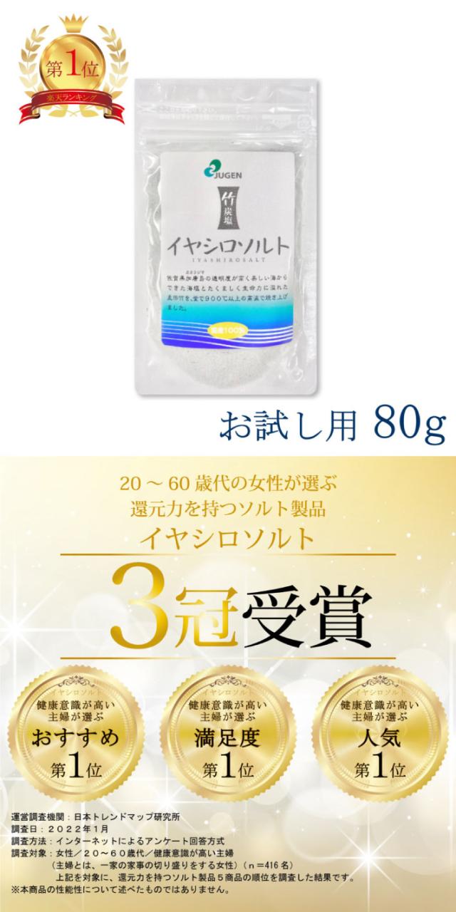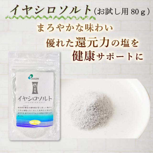 イヤシロソルト 80g お試しサイズ 小袋 スタンドパック ミニ 国産 竹塩 還元力 還元塩 食塩 焼塩 天然塩 竹炭 調味料 おにぎり 料理 スキンケア 歯磨き ミネラル 万能 放射能検査済み 送料無料 ,