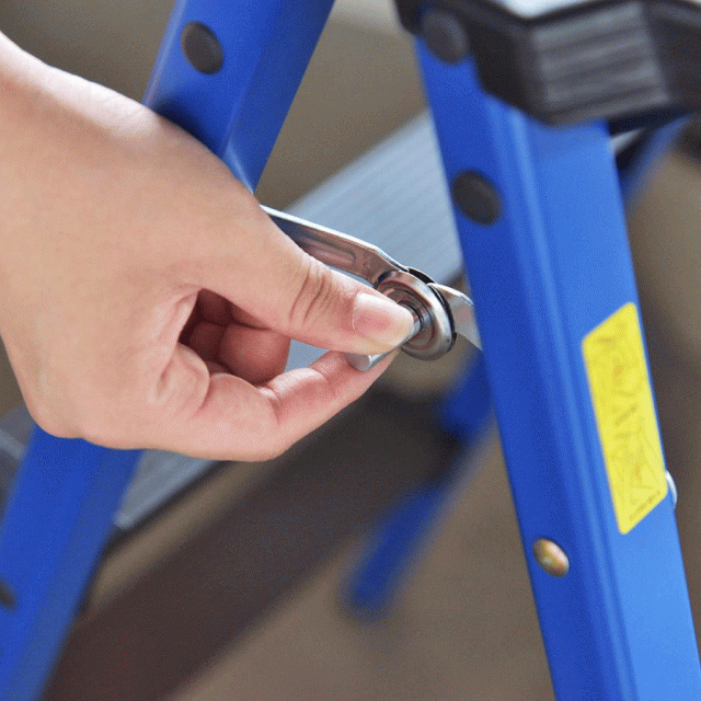 耐荷重量100kgなのにインテリア性抜群!DIYやアウトドアライフに使いやすいツートンカラーで新登場。ステップ部分はブラック、フレームはブルーやレッド、イエローでアクティブな印象に。