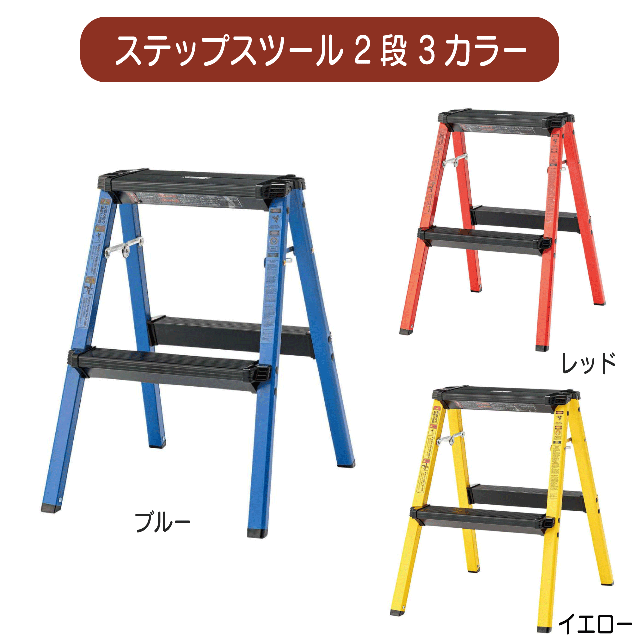 ステップスツール 2段 3 カラー ブルー レッド イエロー W41×D47×H55cm 脚立 アルミ おしゃれ 踏み台 ステップ 折りたたみ式 アウトドア 掃除 アメリカン スツール 送料無料