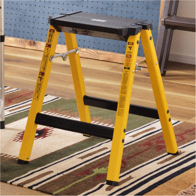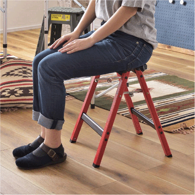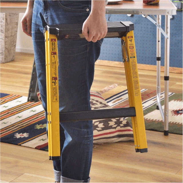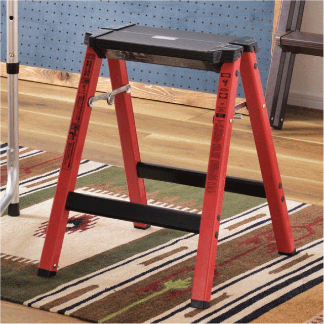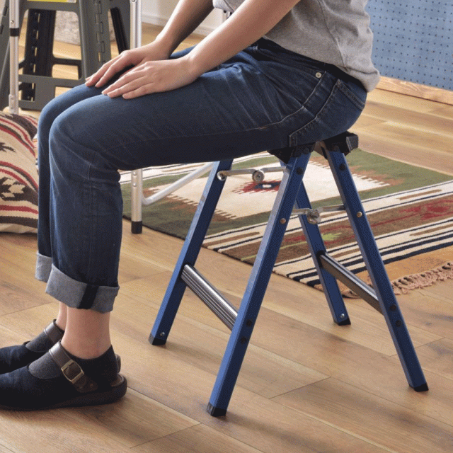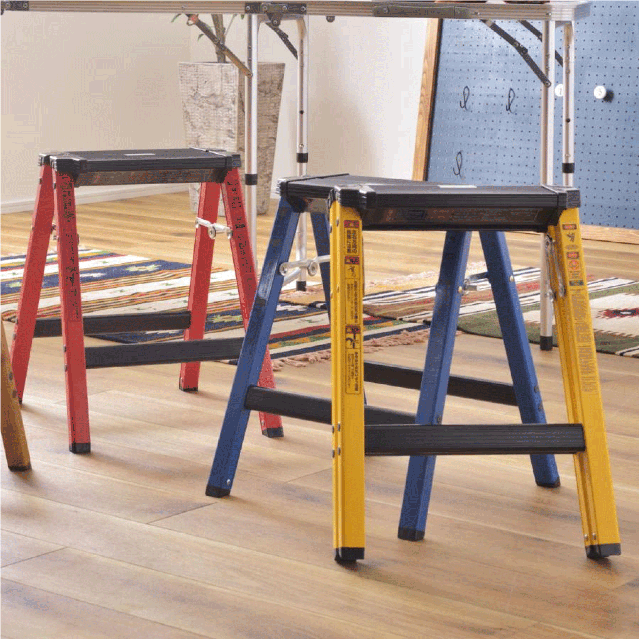 耐荷重量100kgなのにインテリア性抜群!DIYやアウトドアライフに使いやすいツートンカラーで新登場。ステップ部分はブラック、フレームはブルーやレッド、イエローでアクティブな印象に。