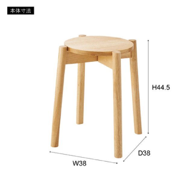 スツール 椅子 イス W38×D38×H44.5cm 木製 スタッキング可 積み重ね 天然木 シンプル おしゃれ 北欧 韓国インテリア ブラウン 軽量 送料無料