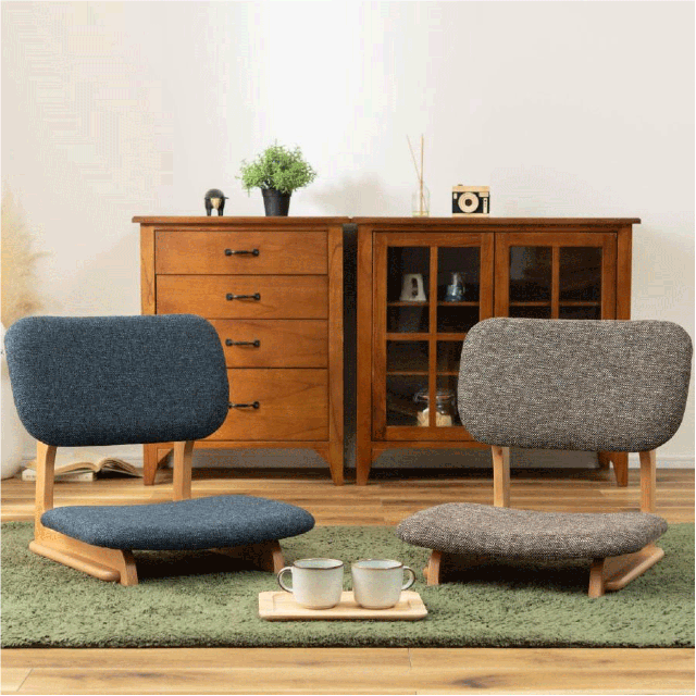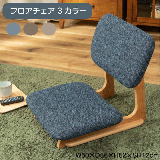 フロアチェア 3カラー ブルー ブラウンベージュ W50×D56×H52×SH12cm 座椅子 チェア イス 椅子 おしゃれ 低め 和風 天然木 木製 アームレス 肘なし 背もたれ センターテーブル 一人暮らし 送料無料