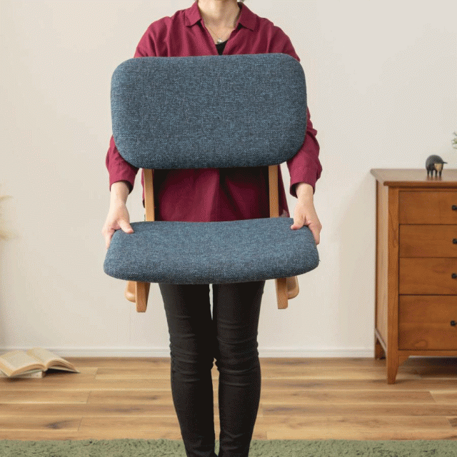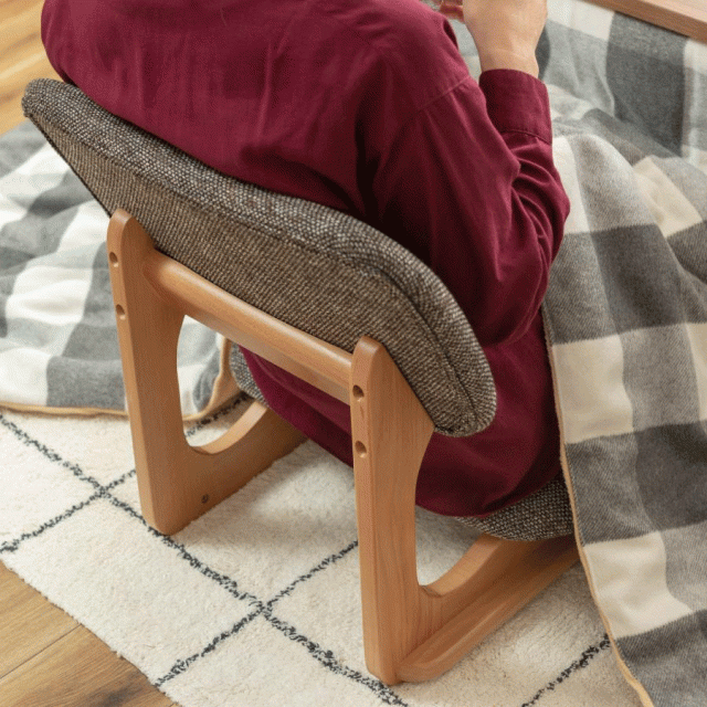 ナチュラルな生地感と天然木の組み合わせが優しさを感じさせるフロアチェア。全体的に大きめの作りで老若男女問わずゆったりと座ることができます。カラー展開は落ち着いた色味の三色。