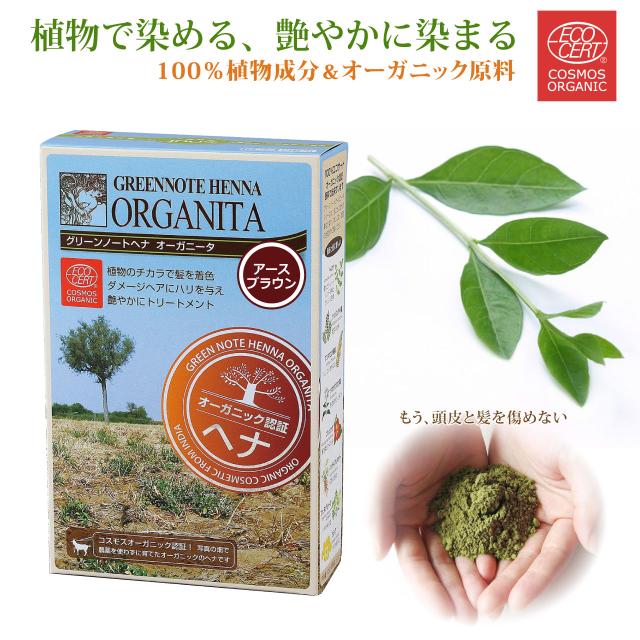 ヘナ オーガニータ ORGANITA アースブラウン グリーンノート 100g 白髪染め カラーリング ヘンナ オーガニック ヘナ ヘナカラー 白髪 白髪染 ヘアカラー ヘアーカラー 天然 無添加 エコサート