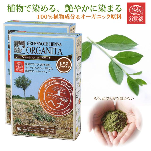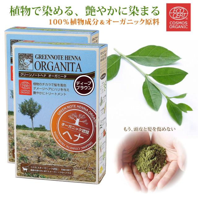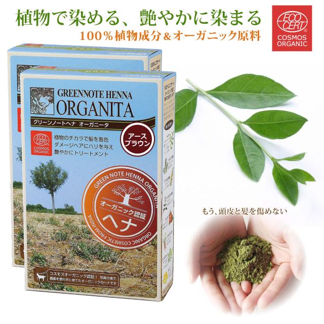 ヘナ オーガニータ ORGANITA アースブラウン 2箱 グリーンノート 100g 白髪染め カラーリング ヘンナ オーガニック ヘナ ヘナカラー 白髪 白髪染 ヘアカラー ヘアーカラー 天然 無添加 エコサート