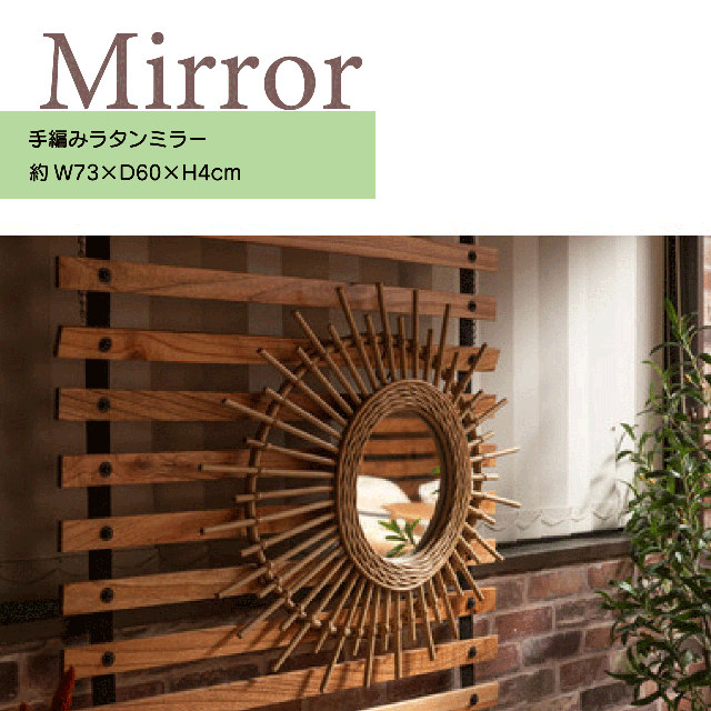 ラタン ラッカー塗装 ミラー ※ミラー部サイズ:Φ24cm