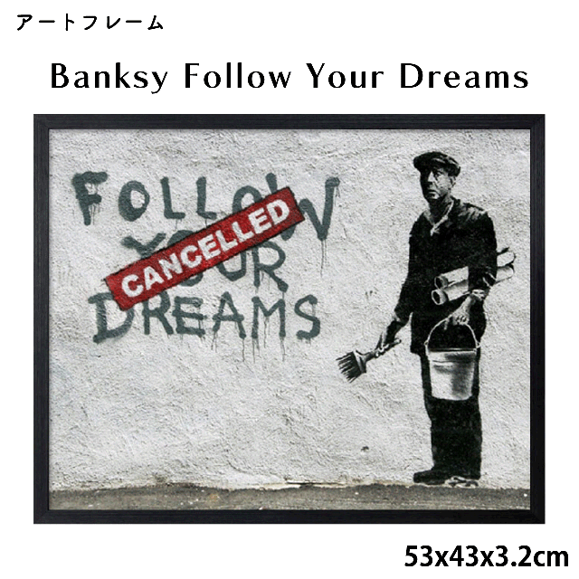アートフレーム バンクシー Banksy Follow Your Dreams 53x43x3.2cm アートポスター ストリートアーティスト グラフィティー フォローユアドリーム おしゃれ 送料無料