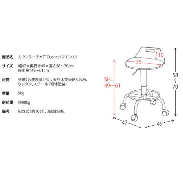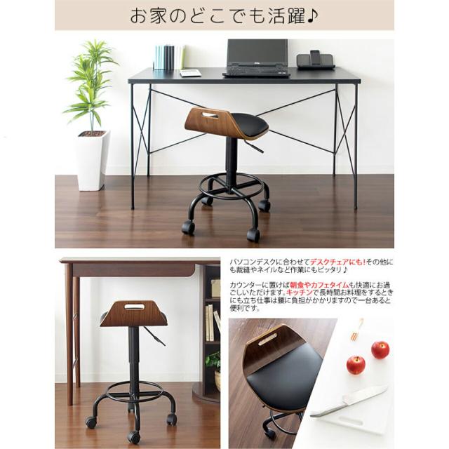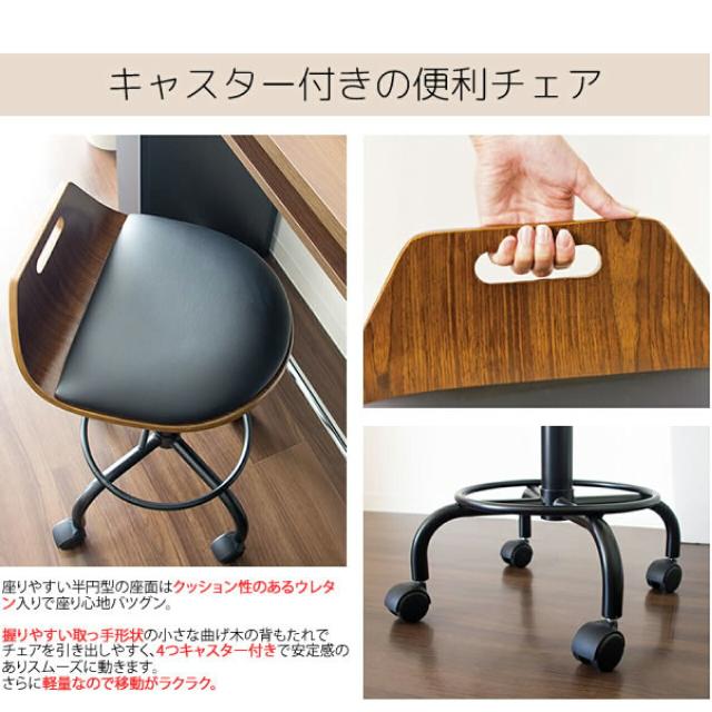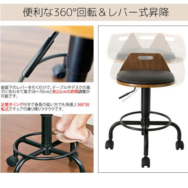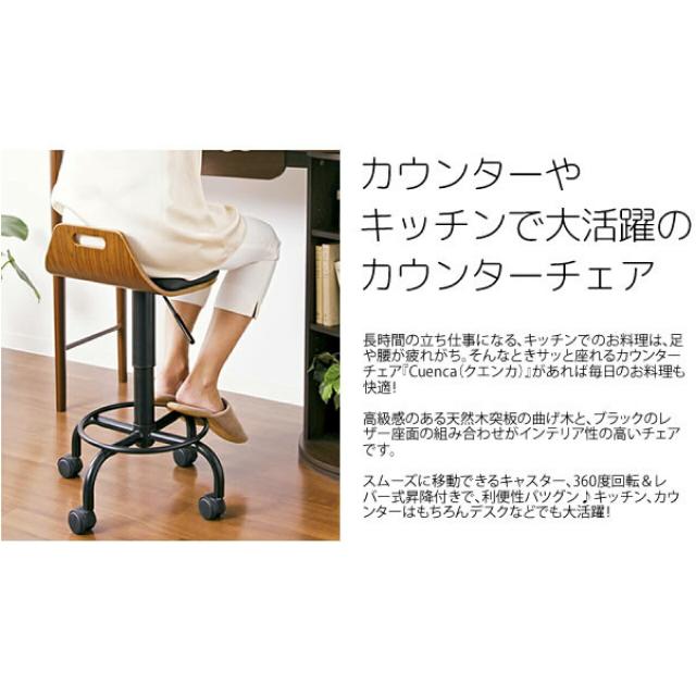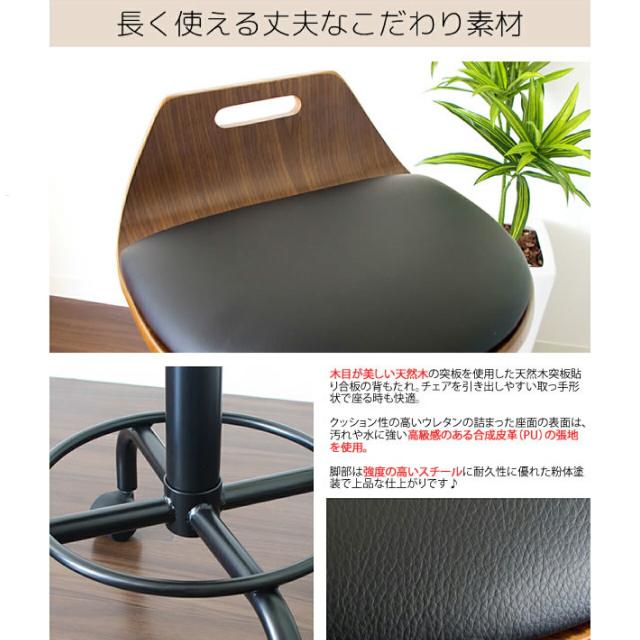 曲げ木カウンターチェア KNC-J240 幅47×奥行49×高さ58~70cm ブラック 黒 360度360度回転&レバー式昇降付き キャスター付き 高級感 天然木 レザー座面 軽量 送料無料