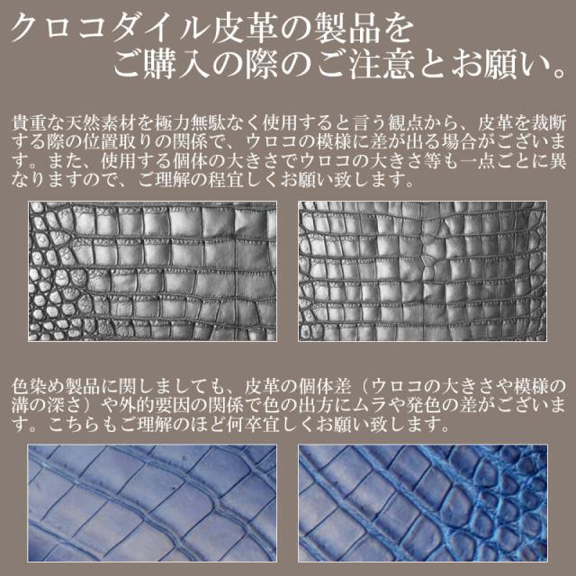 藍染クロコダイルの限定モデルです。付属品に、JRA(全日本爬虫類皮革産業協同組合)認定タグ、不織布、化粧箱がつきます。