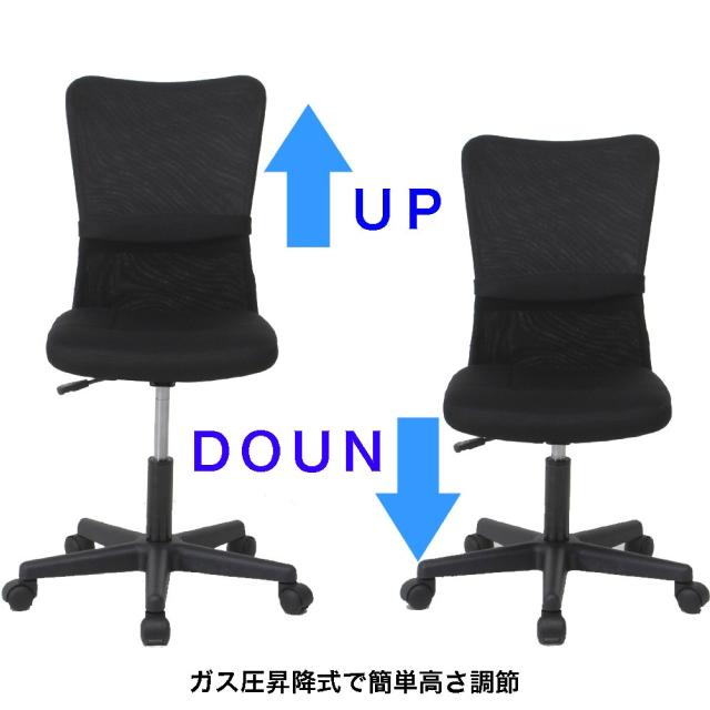 メッシュ素材を使用したオフィスチェアです。狭いスペースでも使いやすいスリムタイプ。ガス昇降機能が付いているので、デスクや伸張に合わせてお好みの高さに調節することができます。