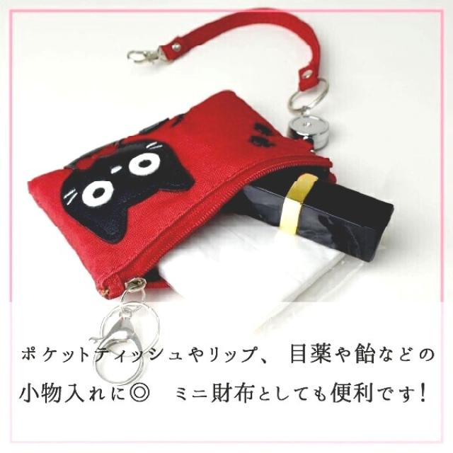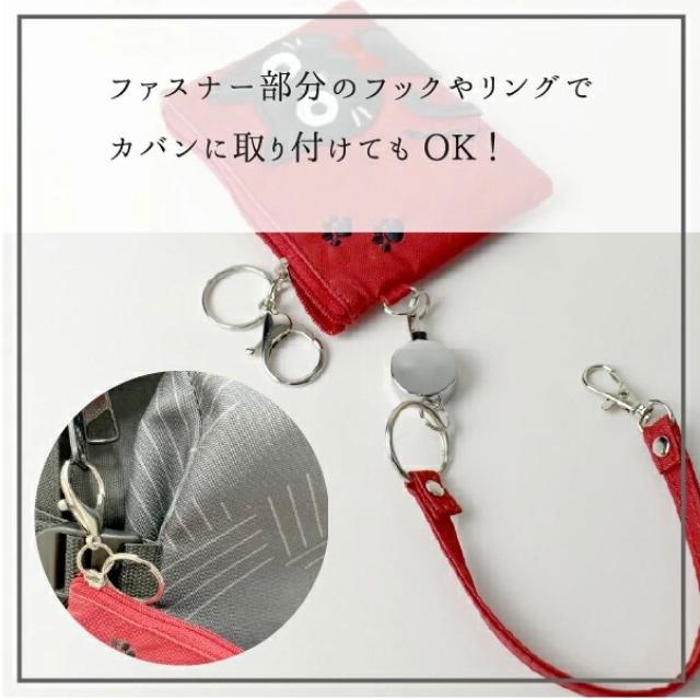 ねこのアップリケがかわいい、リール付きで便利なカードケース。定期やICカード、学生証や社員証など必要なカードをまとめて収納して便利に持ち運びができるカードホルダーです。全6色