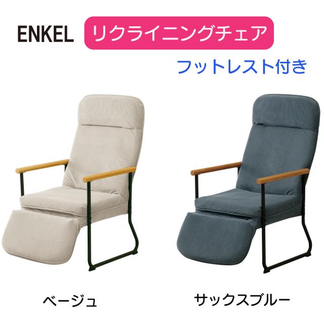 ENKEL リクライニングチェア ENKEL-2 フットレスト付き 2色 ベージュ サックスブルー ハイバック 体圧分散 腰痛対策 高さ3段階調節 シートバック7段階調節 ヘッドレスト プレゼント 送料無料