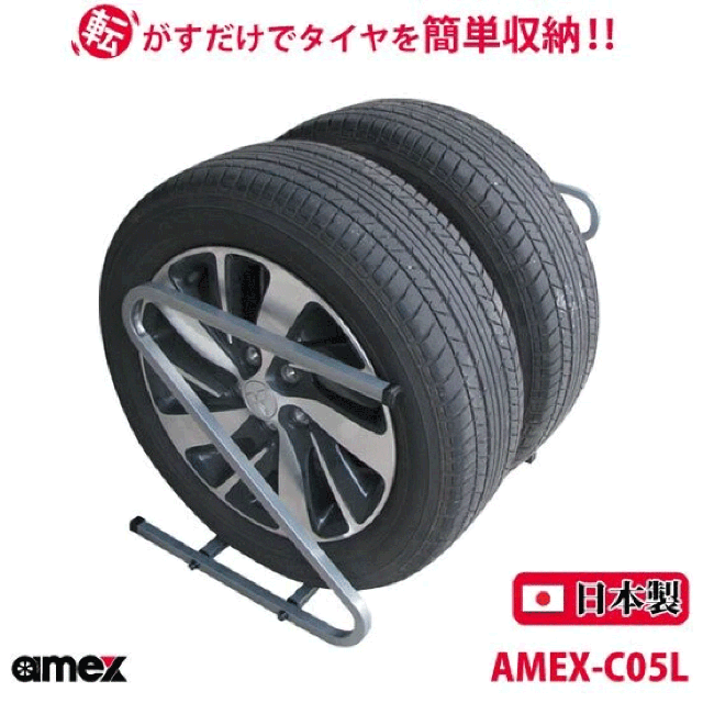 タイヤラック 195?235mm 普通自動車タイヤ対応 AMEX-C05L 2台で4本収納可能 Z型 転がすだけで簡単収納 ZAM材をコーティング 錆びにくい 日本製 女性にもオススメ 軽い コンパクト 送料無料